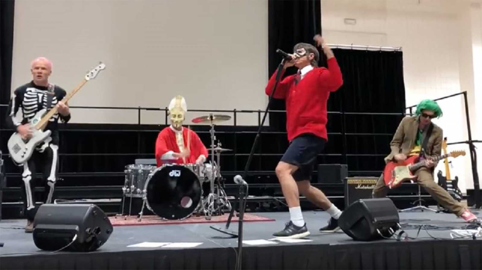 Οι Red Hot Chili Peppers έδωσαν μια αποκριάτικη παράσταση έκπληξη σε σχολείο της Καλιφορνίας χθες (31 Οκτωβρίου).