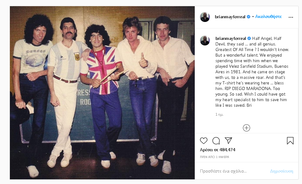 Παρακάτω μπορείτε να δείτε την ανάρτηση του Brian May (Queen)